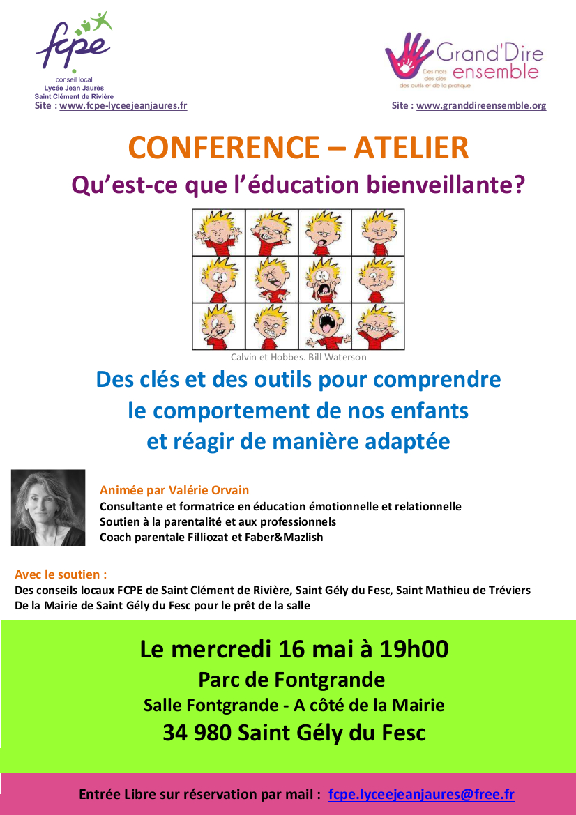 Accueil >  Restez informés > AgendaConférence - atelier ’Qu’est ce que l’éducation bienveillante’