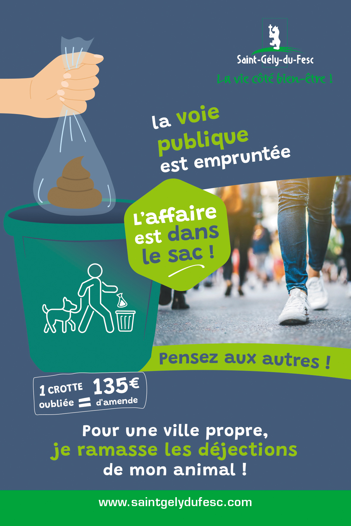 Pour une ville propre, je ramasse les déjections de mon animal.