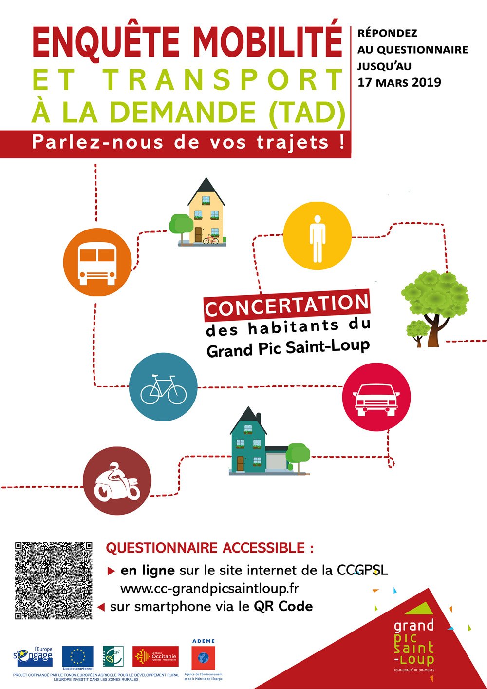 La Communauté de communes procède à une étude sur les modes de transport des habitants du Grand Pic Saint-Loup, et notamment sur la possibilité de mettre en place un transport à la demande (TAD) sur le territoire. Un questionnaire est lancé pour connaître vos attentes et vos besoins.