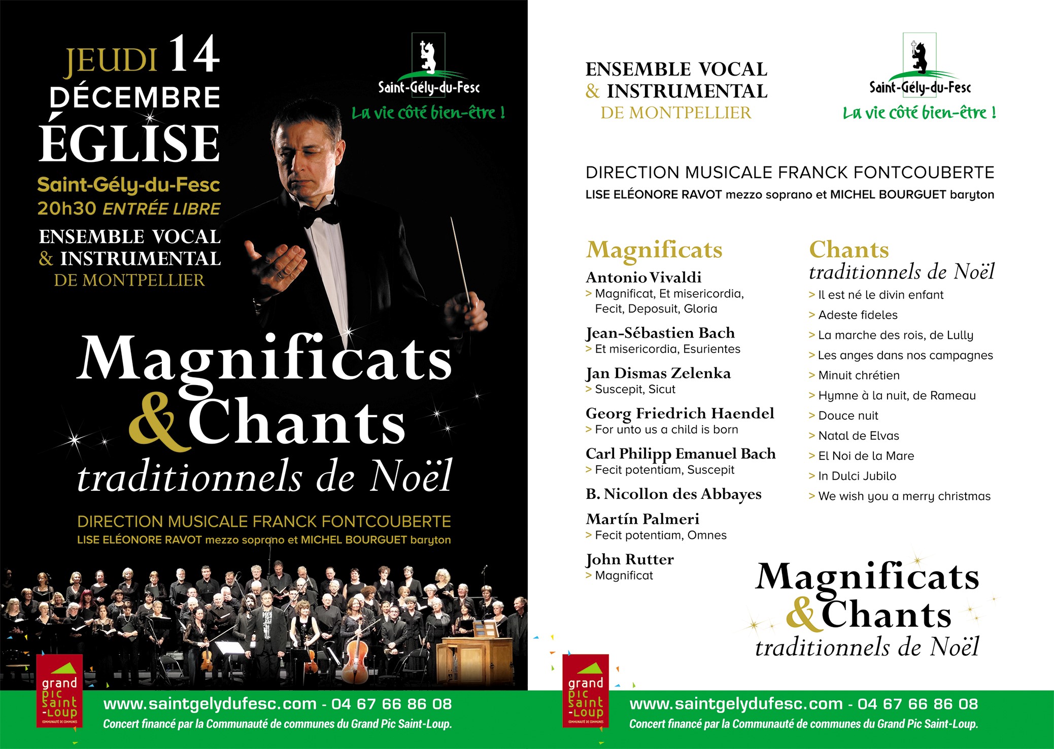 Concert de l’ensemble vocal et instrumental de Montpellier financé par la Communauté de communes du Grand Pic Saint-Loup, en partenariat avec la municipalité : Magnificats et chants de Noël.