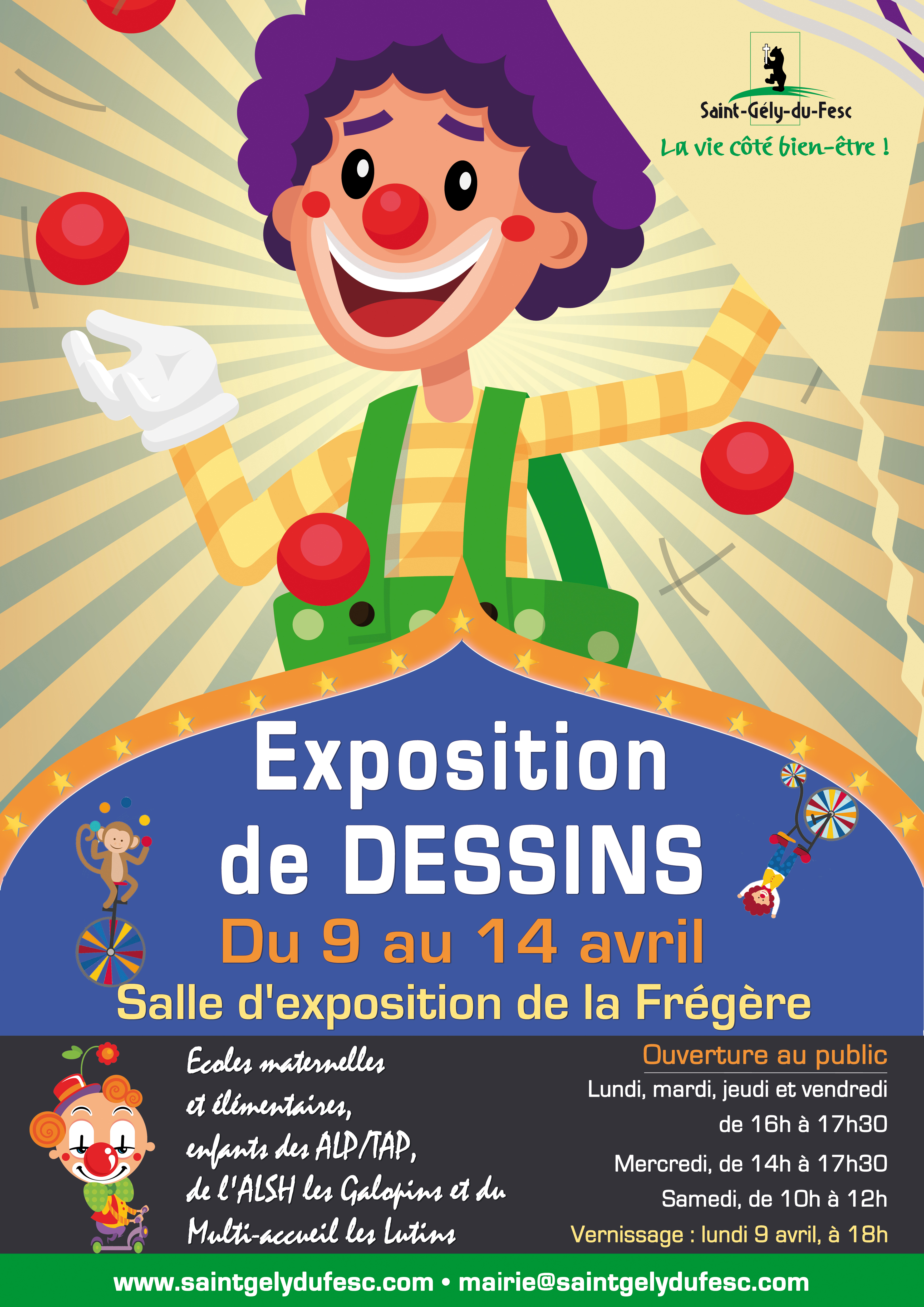 Du 9 au 14 avril, les élèves des écoles maternelles et élémentaires, mais aussi les enfants des ALP/TAP, de l’ALSH les Galopins et du Multi-accueil les Lutins vous convient à venir admirer leurs créations sur le thème du cirque. L’occasion pour eux d’exprimer toute leur créativité ! Si chaque structure viendra découvrir l’ensemble des oeuvres à la Salle d’exposition de la Frégère sur des créneaux horaires dédiés, cet évènement est également proposé à tous les Saint-Gillois, en entrée libre lundi, mardi, jeudi et vendredi de 16h à 17h30, mercredi de 14h à 17h30 et samedi de 10h à 12h.