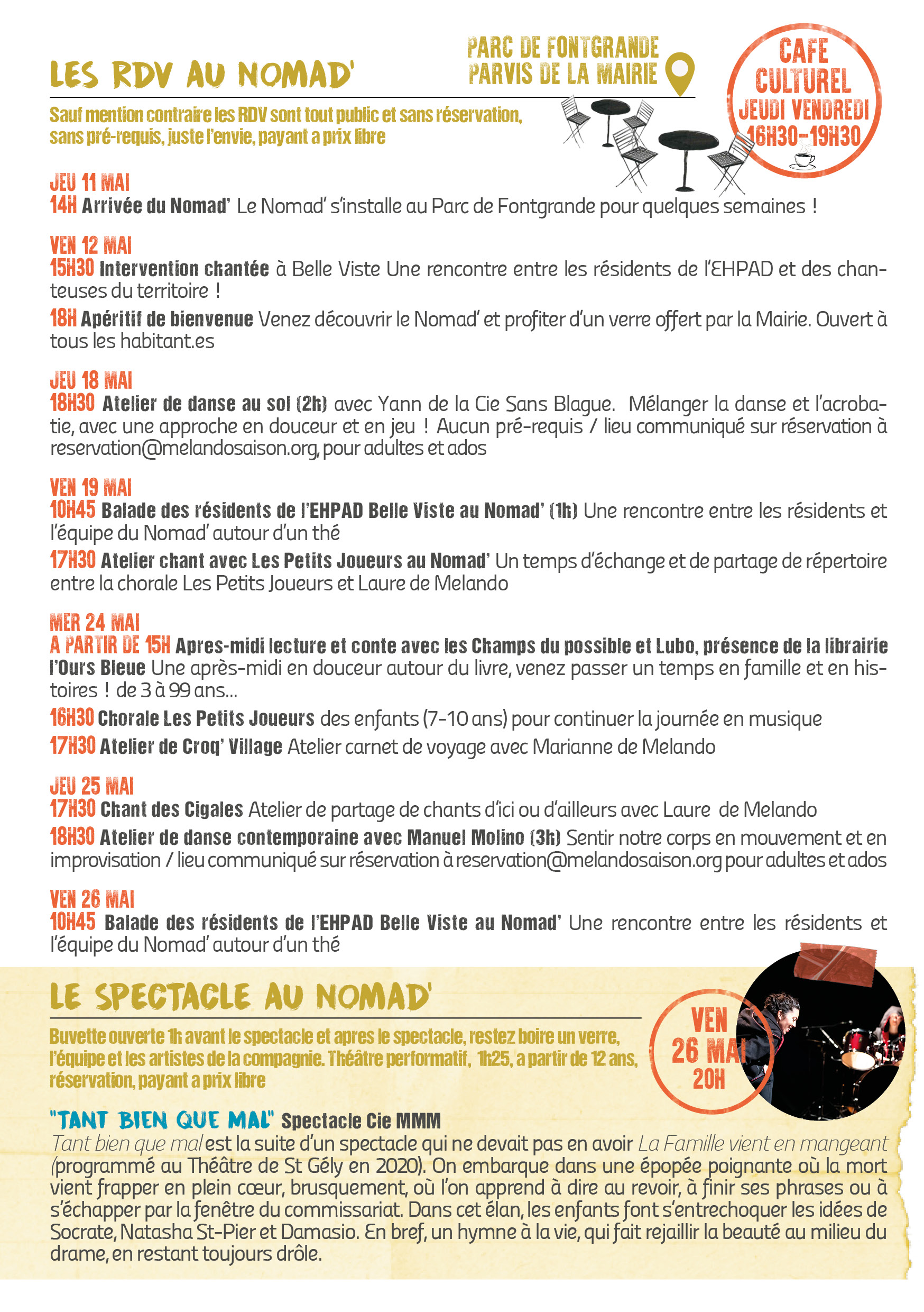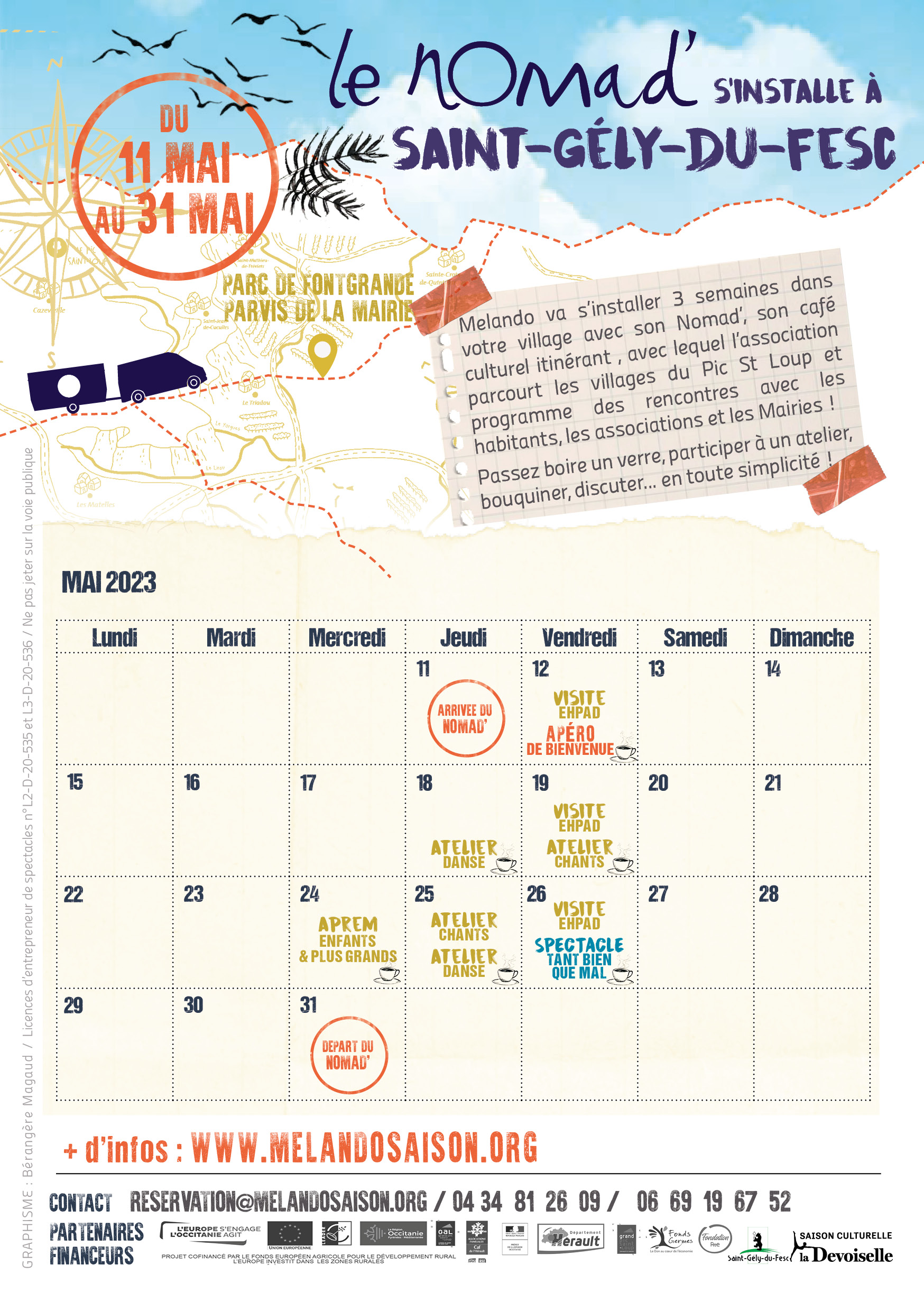 L’association « La saison artistique de Melando » s’installe sur notre commune avec son Nomad’, une caravane itinérante accueillant un espace culturel expérimental et participatif dédié aux ateliers, aux rencontres et aux spectacles.