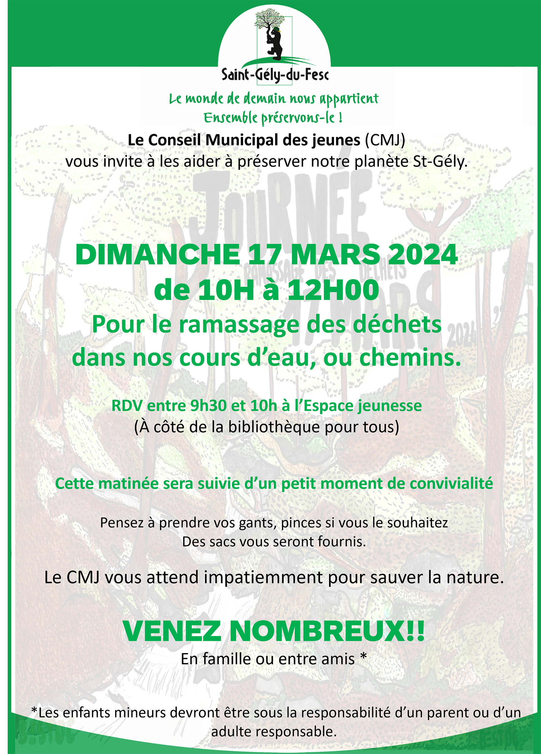 Les membres du Conseil municipal des jeunes vous invitent à les rejoindre lors de leur opération « Saint-Gély plus propre Ensemble ».