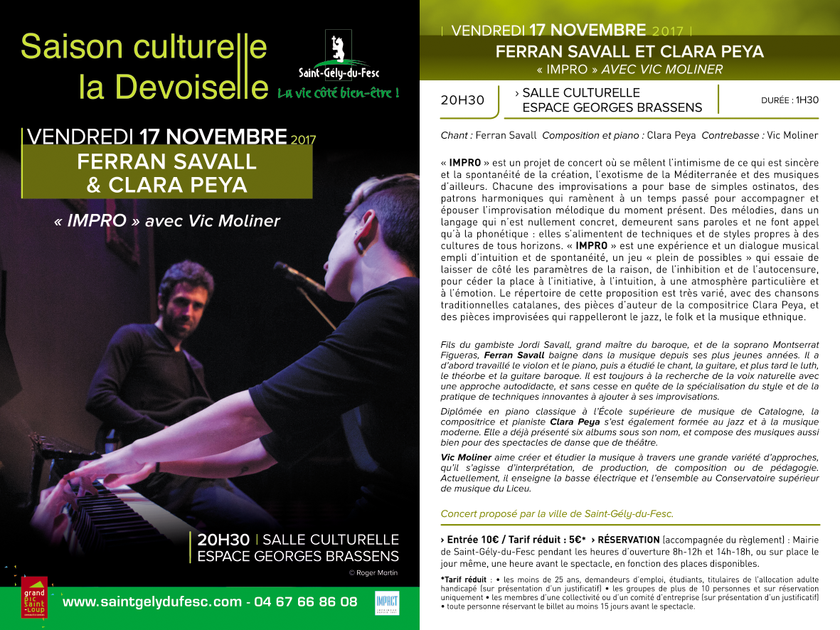 Saison culturelle la Devoiselle : concert de Ferran Savall et Clara Peya ‘Impro’ avec Vic Moliner