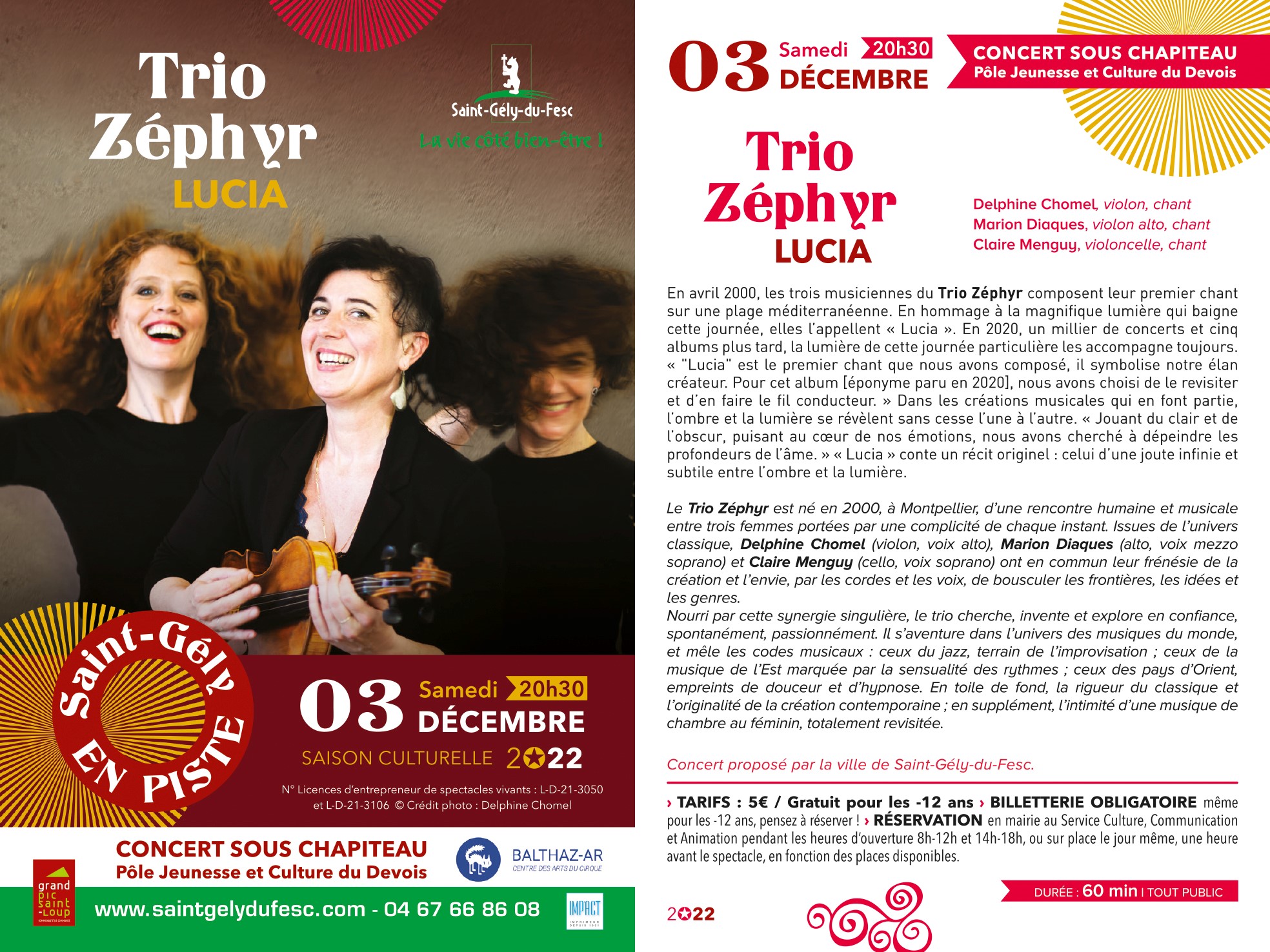 Saison culturelle la Devoiselle Trio Zéphyr "Lucia"